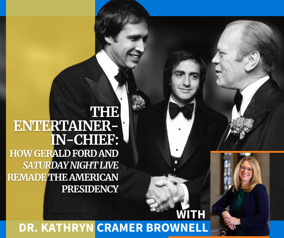 Gerald Ford became President at an unprecedented time of intensifying media scrutiny and growing public cynicism. To build back public trust in the presidency, he reluctantly turned to entertainment television, like the new late-night show, Saturday Night Live. Join Dr. Kathryn Cramer Brownell to explore Ford's embrace of humor which ultimately elevated expectations for presidents to entertain audiences and inadvertently changed what it meant to be “presidential” in the United States.
