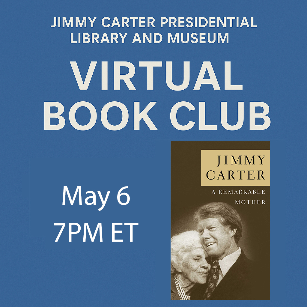The May book club discussion will focus on A Remarkable Mother by Jimmy Carter. As we approach Mother's Day, let's take some time to reflect on the inspiration and influence Miss Lillian had on her son before he became President of the United States and the role she played during and after his presidency. Copies are available for sale in our museum store or on our website. This virtual event is free and open to the public. Register now on our website to participate in the discussion on May 6 at 7 p.m. ET. Live attendance is encouraged, as these meetings are not recorded.