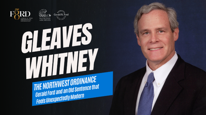 Gerald Ford Jr. grew up in a region of the nation heavily shaped by the Northwest Ordinance of 1787. Ford Presidential Foundation Executive Director Gleaves Whitney will unpack the significance of this jewel among America’s forgotten founding documents and discuss its impact on the civic and political culture in which our 38th President worked.