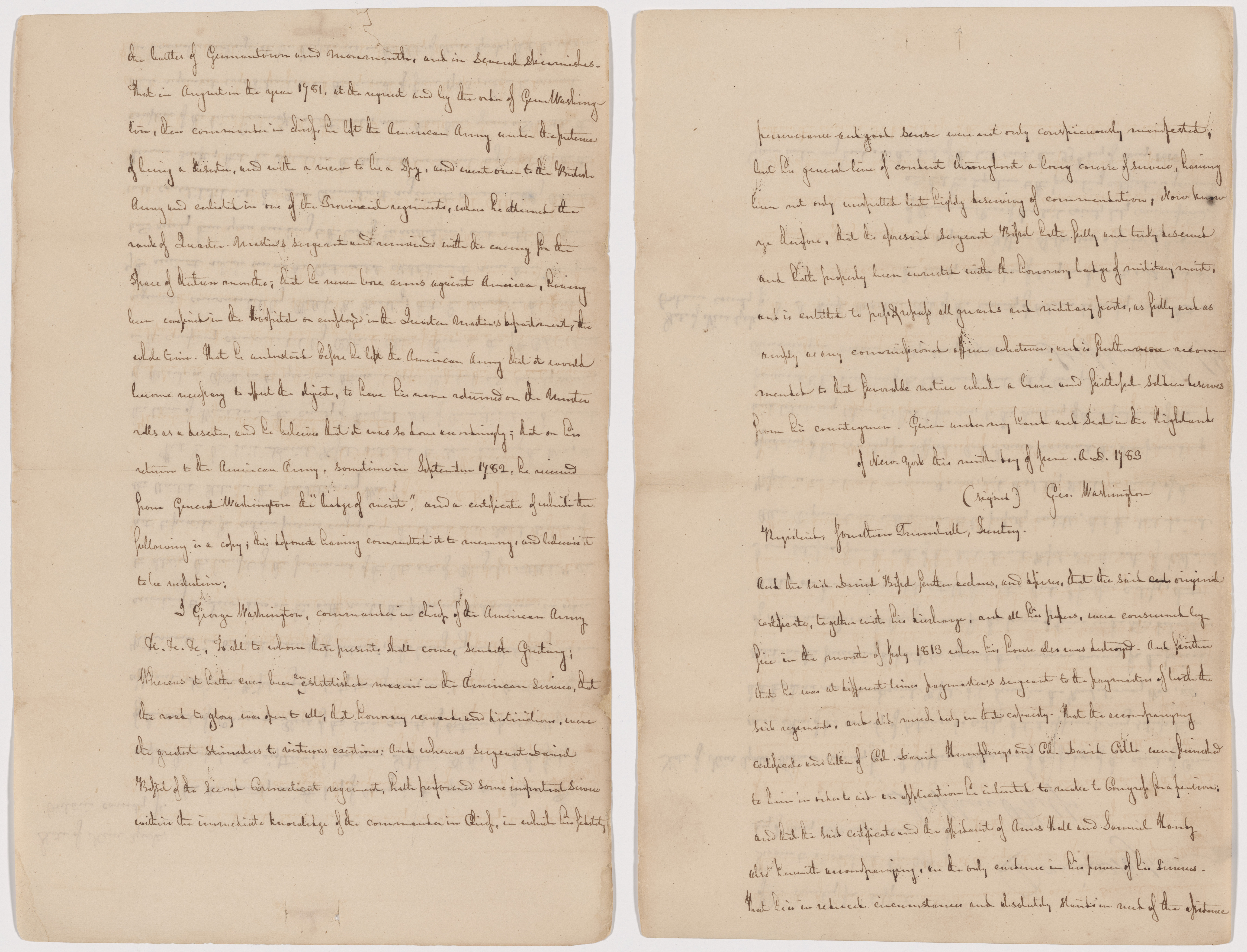 Sergeant Daniel Bissell was the last of three soldiers known to be awarded the Badge of Military Merit by General George Washington. In 1781, Washington selected Bissell to spy on the British. He passed intelligence from behind enemy lines for 13 months. Bissell lost his military citation in a fire, but reproduced it nearly exactly in his 1820 pension application. The Military Badge of Merit was renamed the Purple Heart in honor of Washington’s 200th birthday.
