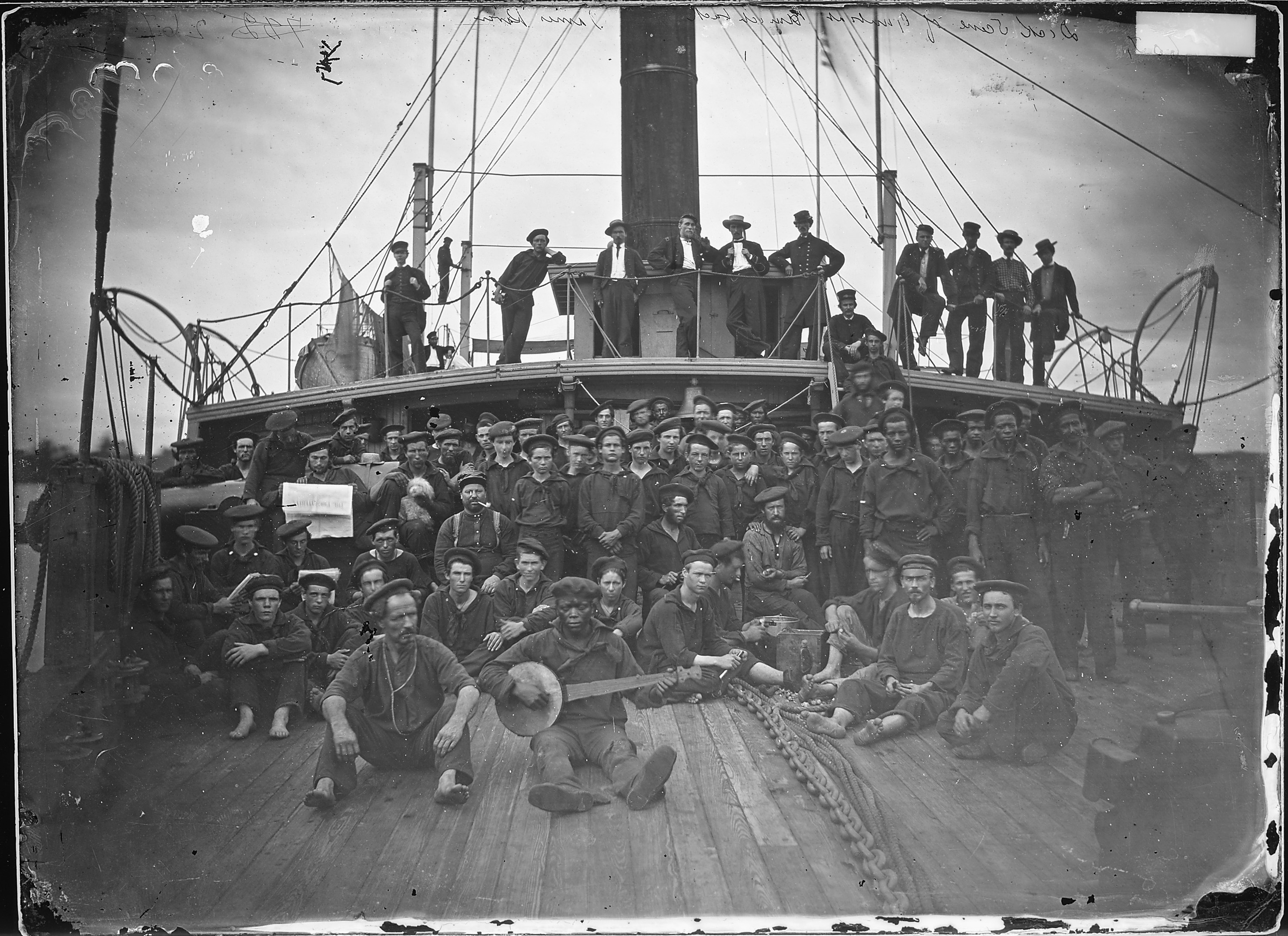 Photography was still a new technology when the Union Navy fought the smaller Confederate fleet. Field photographers recorded intimate scenes of crews as they set up a blockade of southern seaports. These shots reflect a key period in the Navy’s history as it rapidly grew from just a few dozen ships to over six hundred during the war.